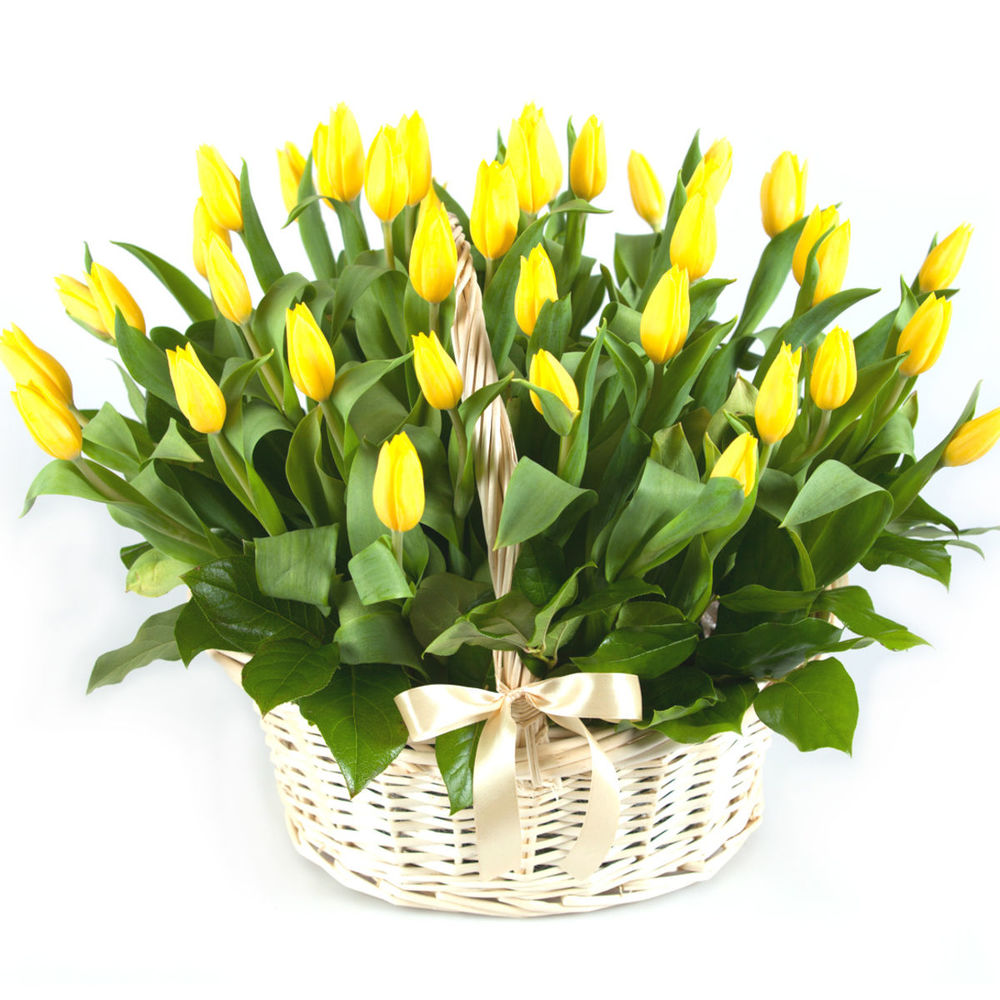 Желтые тюльпаны в корзине