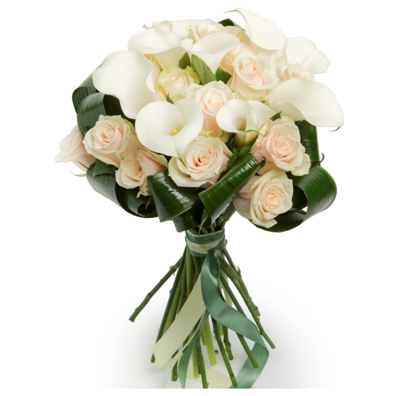 Букет из кремовых роз и калл